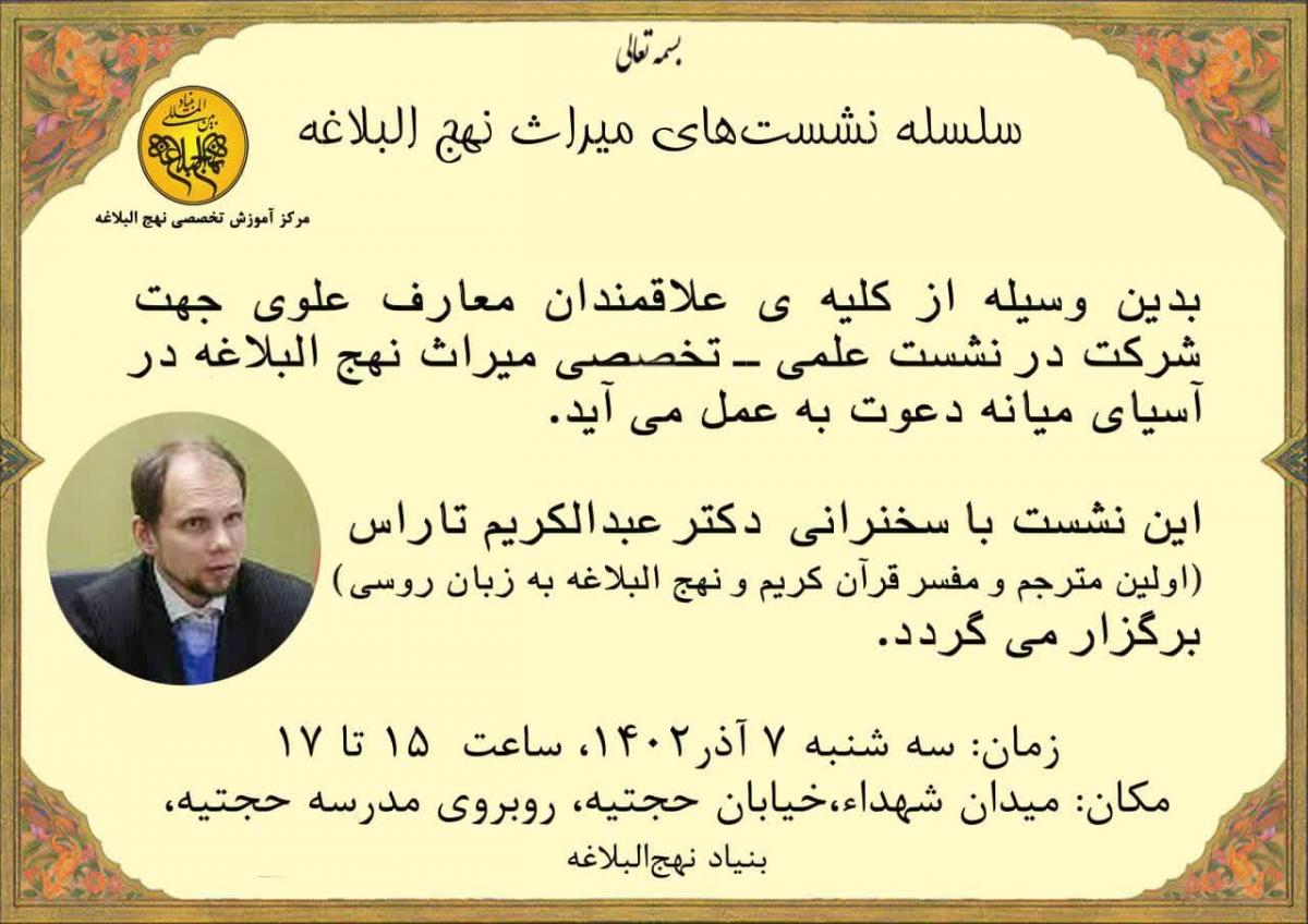 نشست علمی- تخصصی میراث نهج البلاغه برگزار میگردد